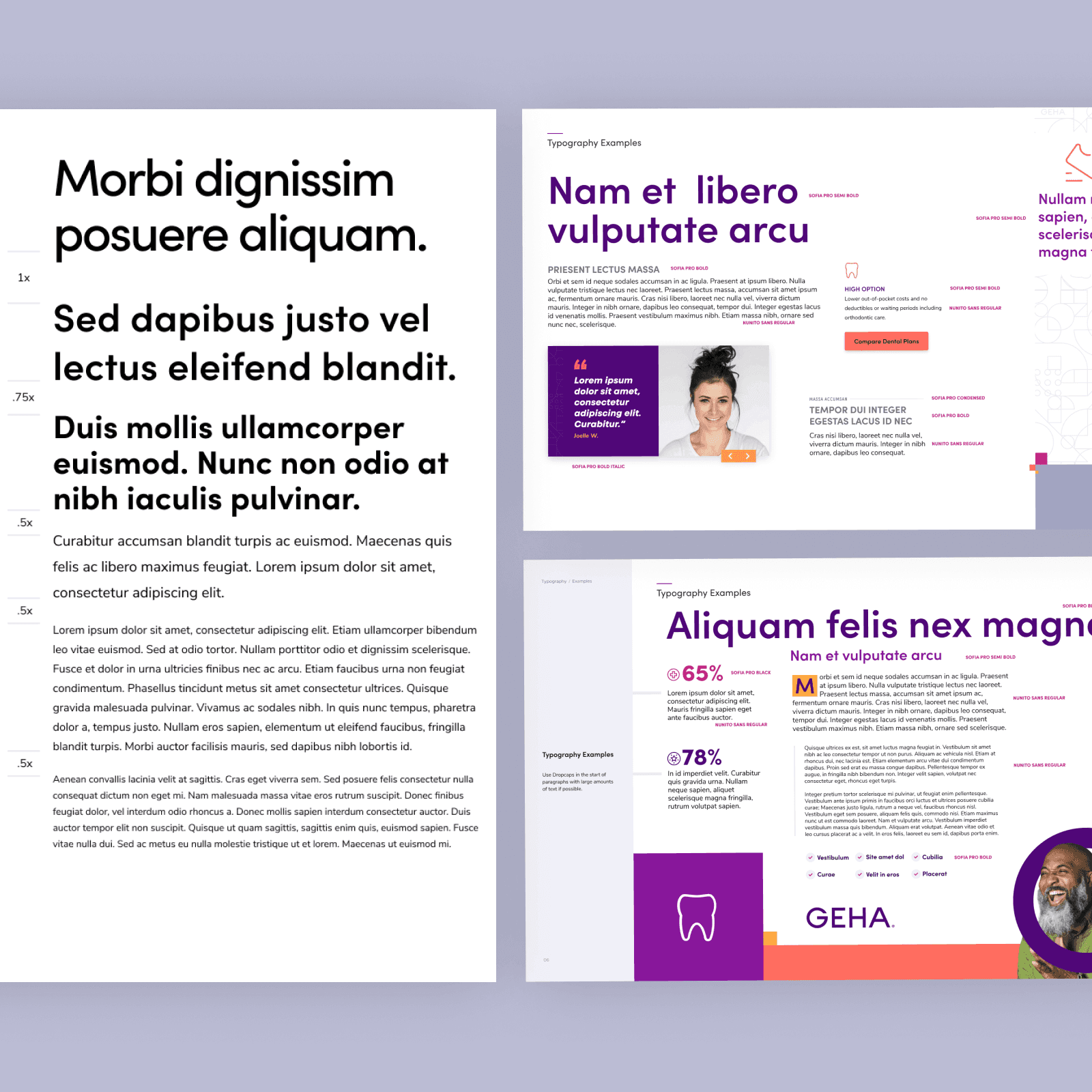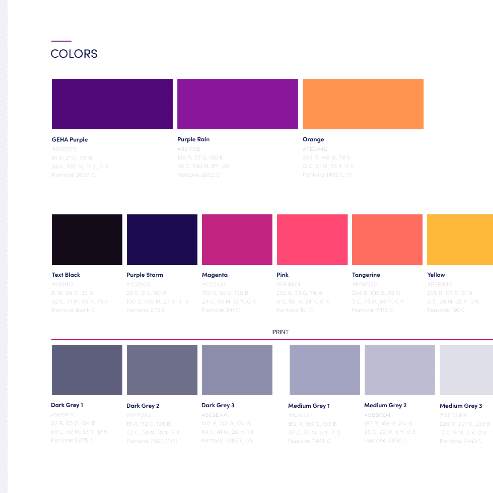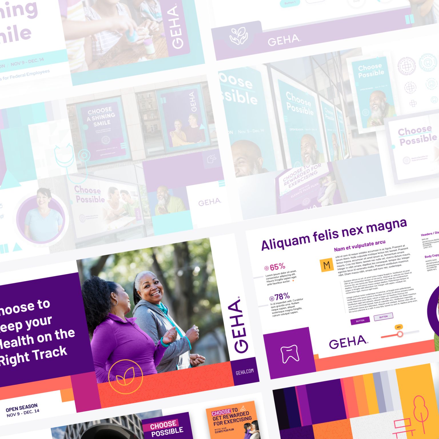 It’s rare to be given the freedom to explore without limitations. For this project, I was trusted with significant creative space to iterate, ideate, and determine the best direction for GEHA’s refreshed brand. Nearly every foundational element was reconsidered. With a clear starting point and room to think, I was able to build a design system that felt modern, adaptable, and easy to apply across a wide range of formats.